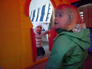 Idag blev det pannkaka med keso till lunch, sen dök det upp något kul och nytt på altanen bredvid vår. Elma och Svea fick en liten fin stuga som Hugo inte kunde motstå...